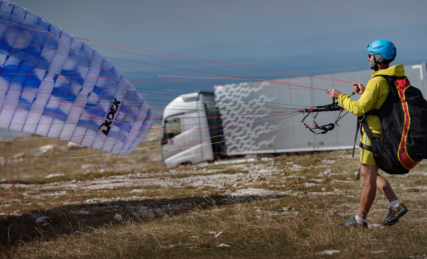 The Flying Passenger’ marks another world first for Volvo Trucks. In the latest Live Test, a Volvo FH tows a paraglider up a mountain pass in Croatia in a precision stunt never tried before. The truck driver has to maintain a high cruising speed to keep the paraglider in the air. The test highlights the performance of Volvo Trucks’ unique powertrain, fitted with I-Shift Dual Clutch.