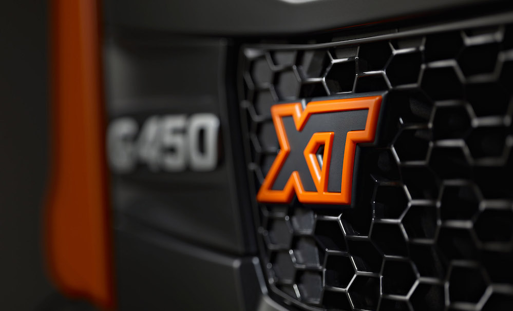 Key features of all Scania XT models are an all-new heavy duty bumper which extends 150 millimetres from the front of the cab with an improved approach angle, and reinforced ribbed rear view mirrors.  Both features provide additional operational durability and combine to give all XT trucks a distinct and rugged visual identity.  The bumper also incorporates an easily accessible towing device located behind the foldable registration plate holder. It is certified for 40 tonnes, enabling the vehicle to pull other vehicles and equipment as well as to be towed when needed.  Other features include slip proof steps, Scania XT branded seats and high-edge rubber mats, and to further set the Scania XT range apart a number of exterior and interior options are available.