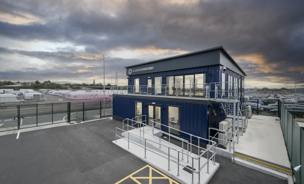 The new 3,500 square foot, two-storey depot terminal office for Solent Stevedores has been constructed by Southampton-based Willbox from 11 steel containers professionally converted to office use and then welded together.
