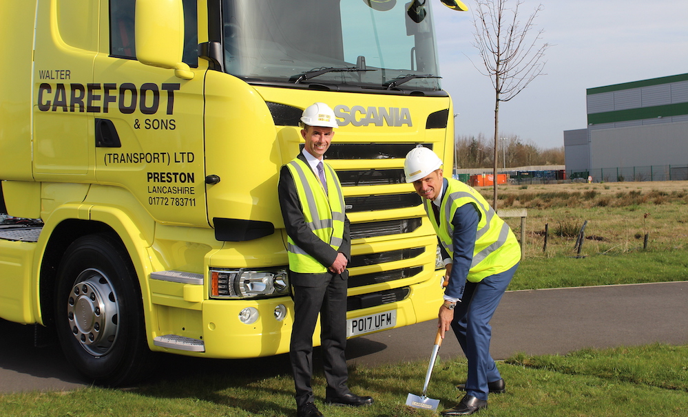 A double celebration has taken place adjacent to the M62 in Burtonwood between Construction and Transport company, Carefoot and Scania Dealer, Haydock Commercial Vehicles.