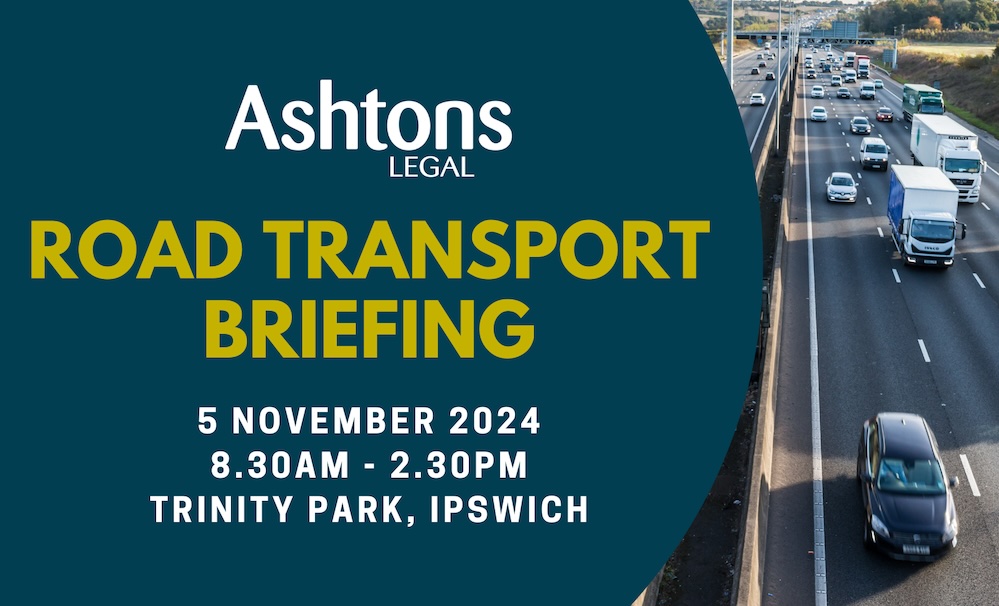 Ashtons Legal LLP are holding a Road Transport Briefing 2024 on 5th November 2024 at Trinity Park, Ipswich.