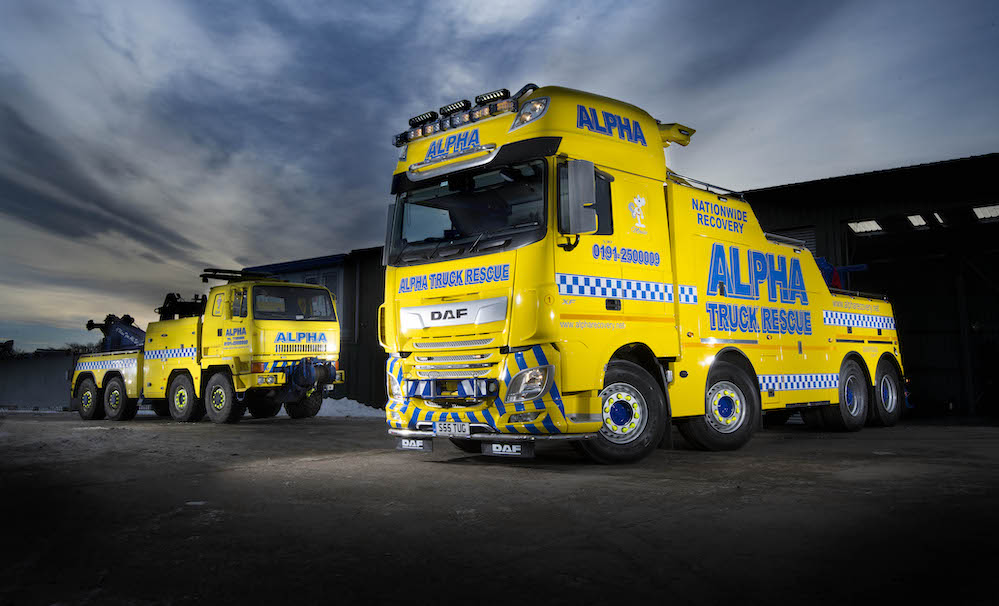 Commercial vehicle recovery specialist, Alpha Recovery in Northumberland, has taken delivery of a range-topping 150-tonne GTW DAF XF eight-wheeler with Super Space Cab and ultra-high specification recovery equipment from Boniface Engineering. An order for a further identical truck, through local DAF Dealer, Evans Halshaw in Stockton-on-Tees, is expected shortly.