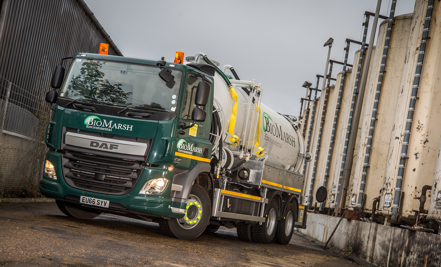 Liquid waste disposal specialist, BioMarsh Environmental Ltd., is expanding its DAF fleet with the first of a programmed delivery of 20 new DAF CF 330 FAS vacuum tankers. DAF’s ‘FAS’ axle configuration comprises 6×2 drive with rear-lift capability – ideal for much of BioMarsh’s operation where high manoeuvrability is required.