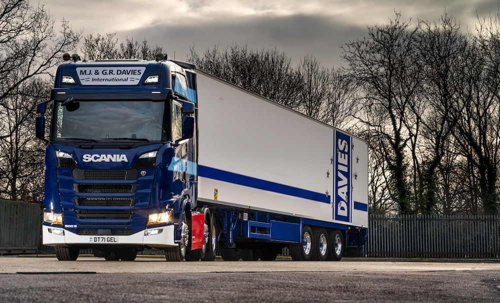 Fareham, Hampshire-based temperature controlled specialist, Davies International Transport Limited, is replacing its entire ten-strong Scania fleet with ten new Scania 500 S 6×2/2 Highline tractor units. Scheduled for delivery over the coming months, the first of these vehicles has been specially liveried in the firm’s original red chassis and two-tone blue cab colours in celebration of the company’s first 50 years in business.