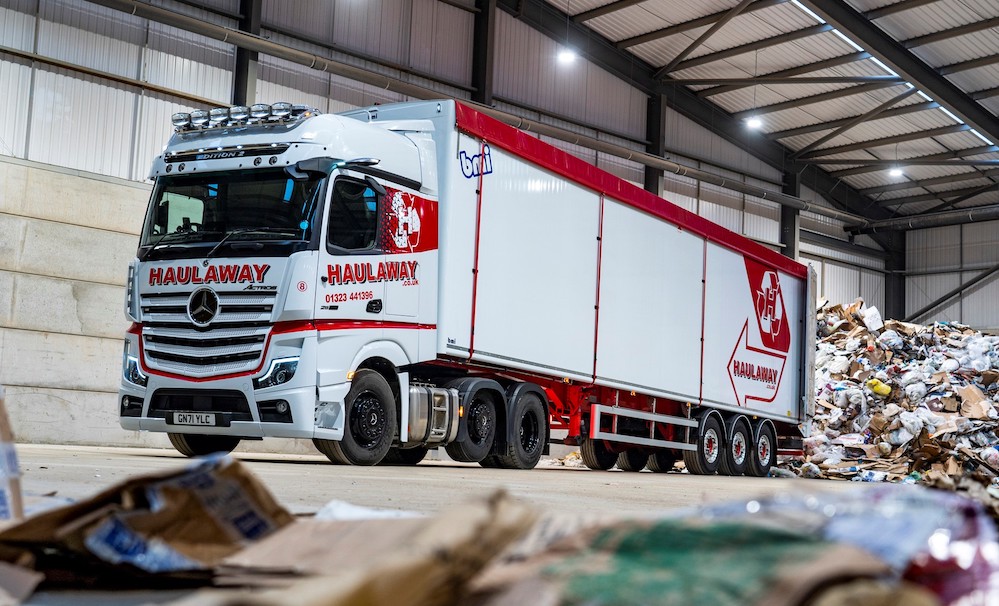 The new unit operates from a distribution centre in Polegate, where Haulaway also has a second recycling facility, and pulls a BMI walking floor trailer. Most of its work entails transporting waste, particularly hard plastics and wood, to and from recycling centres located in and around London.