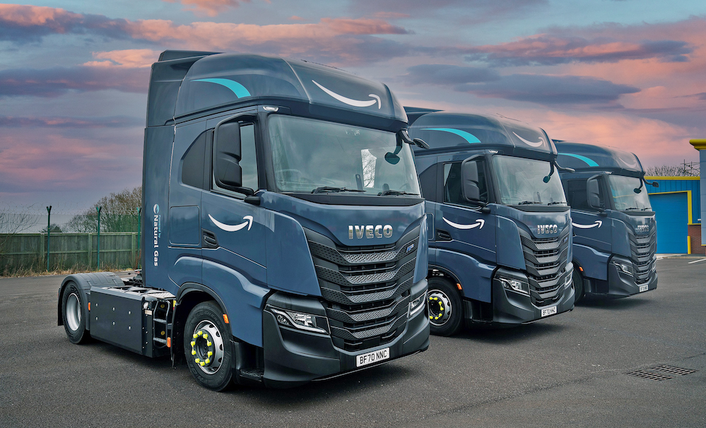Amazon has already taken delivery of the first batch of 216 IVECO S-WAY CNG (Compressed Natural Gas) tractors to be operated by itspartners in Europe and another 848 units have been ordered with deliveries to be started in the middle of 2022 (for a total order of 1,064trucks).