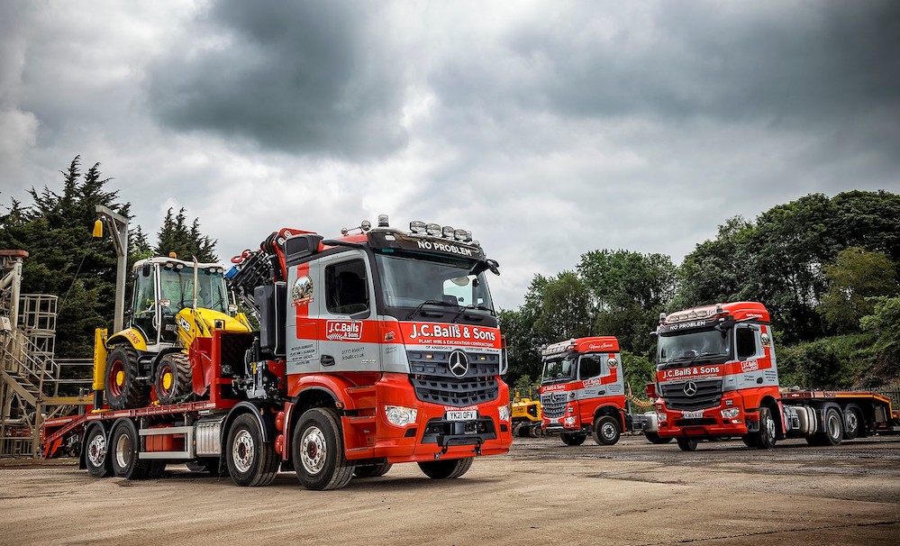 A third-generation family firm, JC Balls offers excavation, earthmoving, plant hire and recycling services and runs a mixed-marque fleet of 28 trucks that includes tippers, tipper grabs and volumetric mixers.