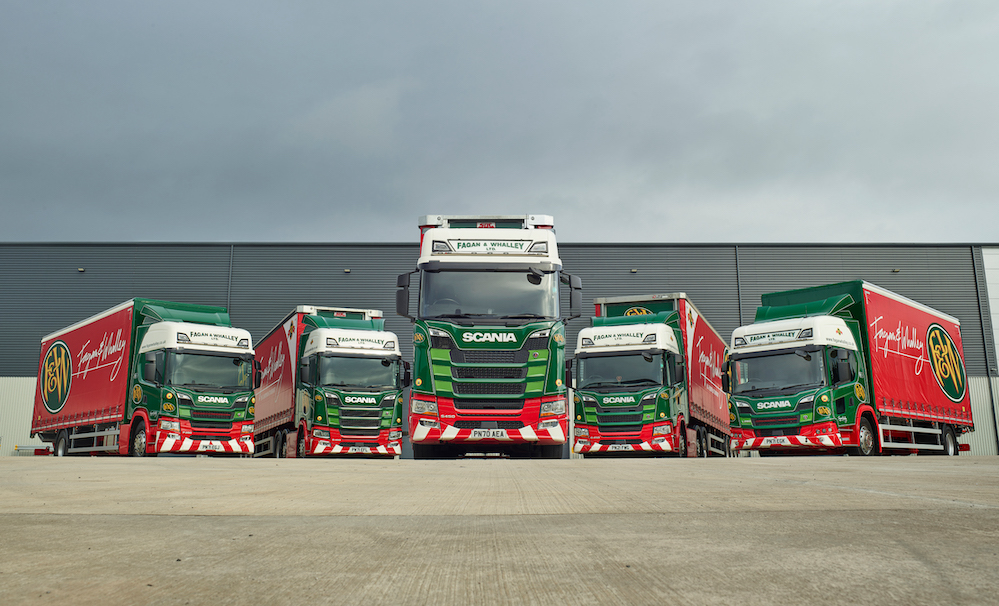 Long-established UK logistics company, Fagan & Whalley, based in Padiham, Lancashire, is celebrating becoming the first operator in the UK to have at least one of each Scania model in the fleet.