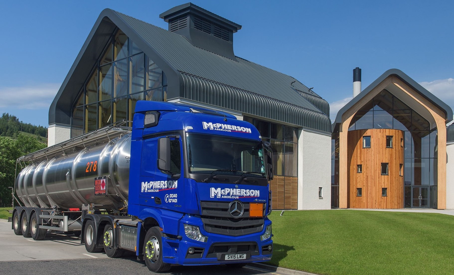 McPherson Ltdprovides a range of services to its whisky-producing customers, carrying raw materials including grain to distilleries, as well as bulk whisky in tanks, and casks in its hydraulic-floored double-deck trailers. Meanwhile other vehicles based at depots across Scotland, the North-East and North-West of England undertake a wider range of haulage tasks.