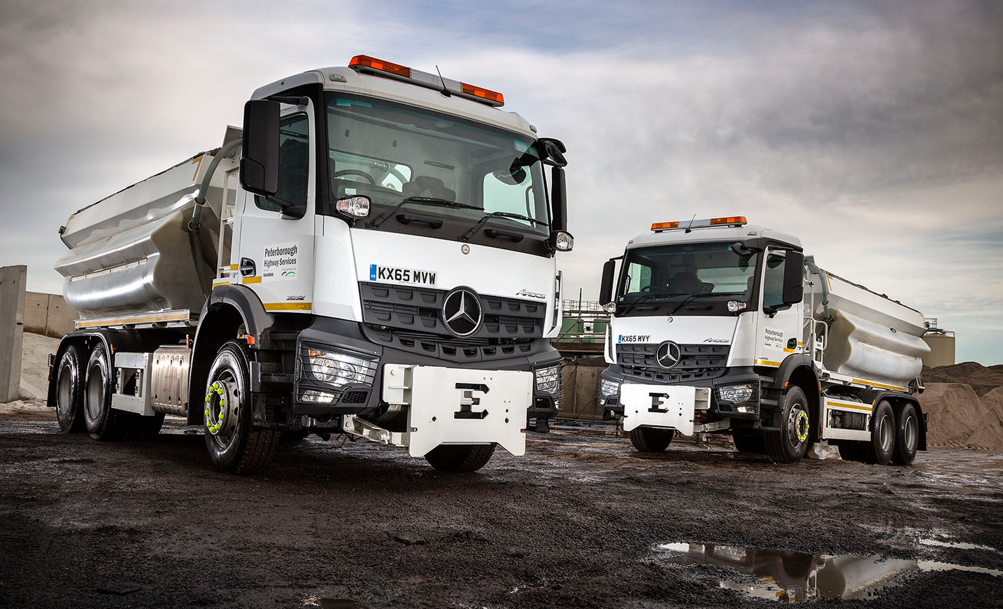 Last winter was one of the warmest and wettest on record but should temperatures plummet this time round, Skanska will be relying on a pair of muscular Mercedes-Benz Arocs gritters to help it keep key roads in and around Peterborough open to traffic.