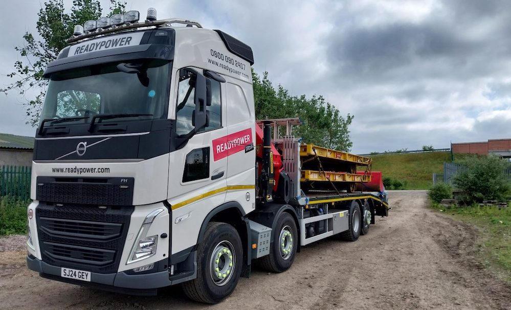 MV Commercial has supplied specialist rail and infrastructure services provider Readypower Rail Services with three 32-tonne 8×2 Volvo FH460s, mounted with heavy haulage plant bodies and Palfinger PK33002 loader cranes.
