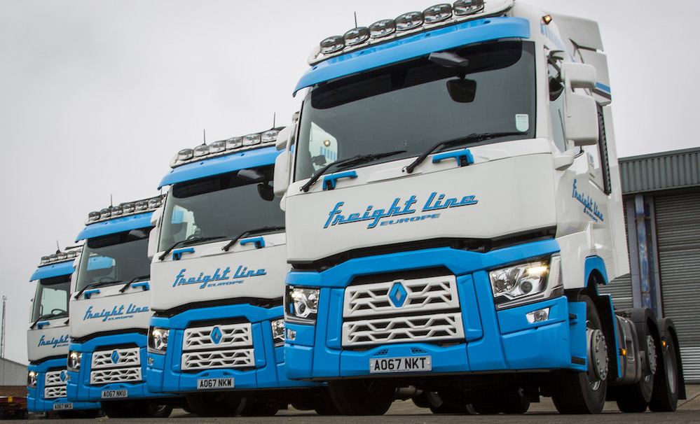 In a first for Freightline Europe UK, the Range Ts are all on full BRS contract hire, with full Renault Trucks repair and maintenance, including Road Fund Licence.