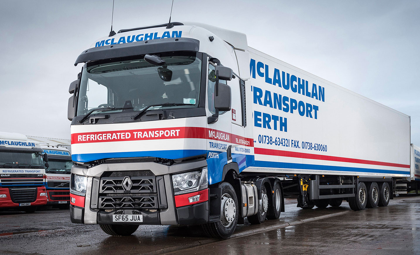 In an important conquest deal, one of Scotland’s leading specialists in refrigerated haulage, McLaughlan Transport, has taken delivery of three 44-tonne Renault Trucks Range T480.26 6×2 tractor units. The Range Ts, supplied by Renault Trucks Scotland with a full repair and maintenance contracts, operate out of McLaughlan Transport’s Perth depot and are the first Renault trucks to join its 35-strong vehicle line-up.
