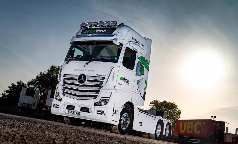 Kent’s Ontime Logistics has a new fleet flagship, a mighty, tag-axled Mercedes-Benz tractor unit with range-topping 460 kW (625 hp) 15.6-litre six-cylinder engine and GigaSpace cab.