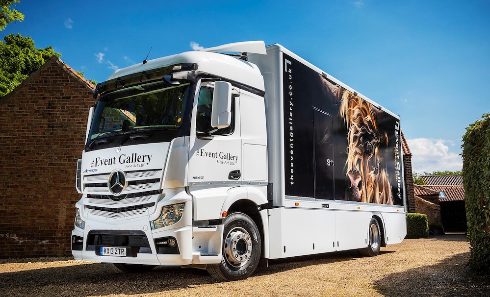 All dressed up but nowhere to go – well, not for the time being at least. That how things stand for the beautifully finished, pre-owned Mercedes-Benz Actros delivered to The Event Gallery Fine Art shortly before the imposition of Covid-19 lockdown restrictions.