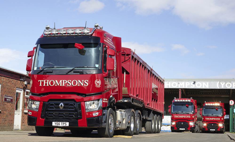 Following recommendations from fellow operators, William Thompson (York) Limited (Thompsons of York) – one of the largest animal feed producers in Yorkshire and the North-East – has selected Renault Trucks for the first time in the their history. As a consequence, three high specification Range T520 6×2 tag axle tractor units have joined the company’s 14-strong fleet working on bulk agricultural deliveries to farms within a 100-mile radius.
