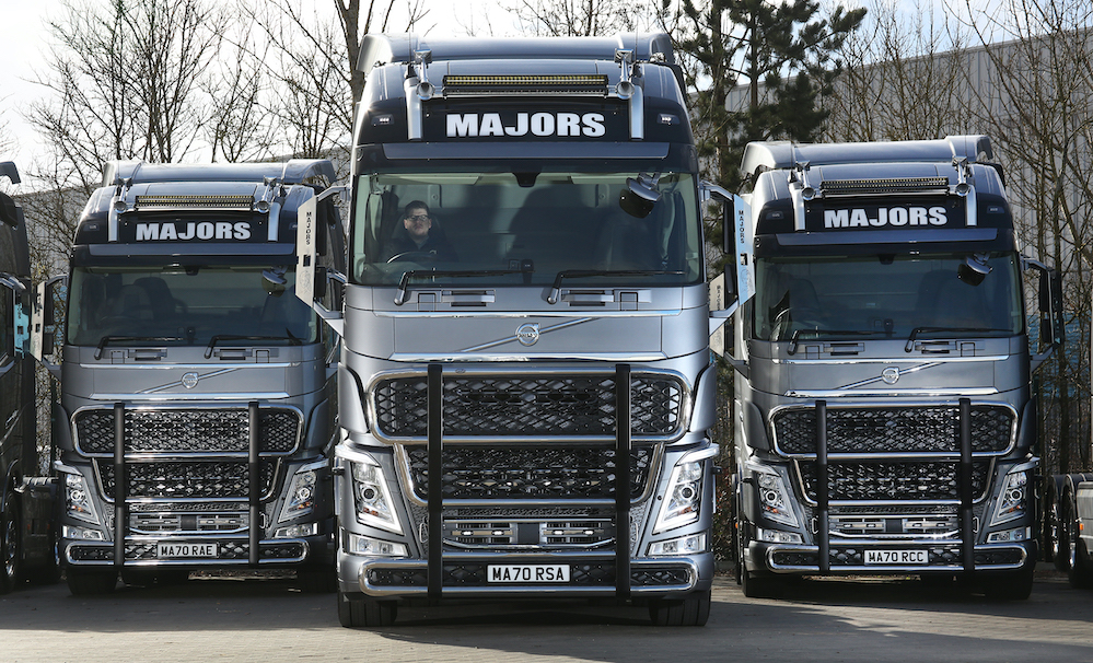 Haulage firm Majors Service has put its first new trucks into operation, taking delivery of 15 Volvo FH with I-Save Unlimited Edition 6×2 tractor units.