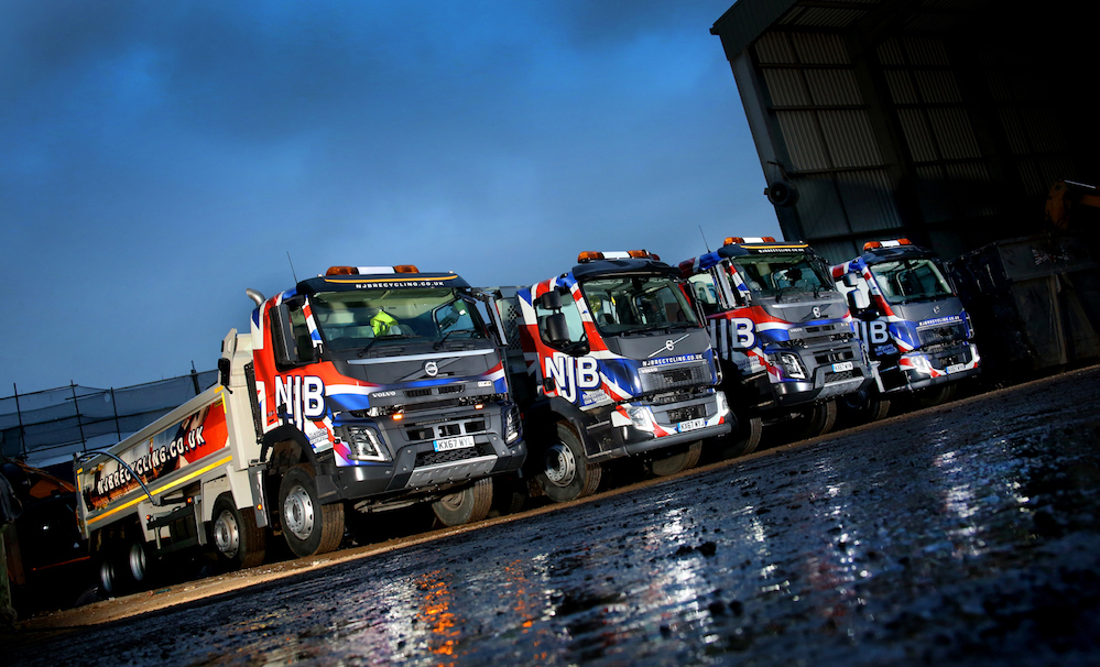 Wimbledon-based, NJB Recycling has recently put five new Volvo trucks into operation. The group consists of three Volvo FL 4×2 18-tonne rigid skip loaders and two FMX 32-tonne, grab equipped, 8×4 tippers. All the new trucks come with NJB Recycling’s instantly recognisable Union Jack livery, which for the first time features a safety-compliant, fully-reflective cab wrap.