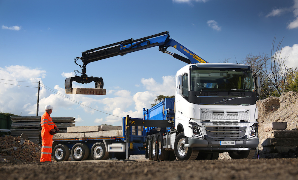 The new FH16-750 also hauls a choice of two tri-axle drawbar trailers and will spend a percentage of its time on the M25 motorway replacing concrete bay roadway sections. A Palfinger PK23001-EH lorry-mounted crane can be equipped with a grab or a vacuum lift attachment. The latter device handles the concrete segments that can weigh between three and three and a half tonnes each. A special build Thompsons tipper body includes drop sides and a double-hinged rear tailgate offering lower loading and tipping heights respectively.