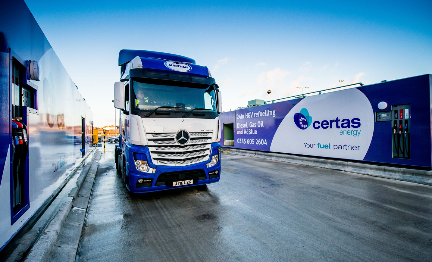 Maritime Transport, who will use the refuelling site when it opens, stated “It’s great news that this new facility will soon be up and running. The site is ideally located for us, as it’s just a few minutes’ drive from our Liverpool depot. This means that our drivers can fill up easily and not have to worry about filling up whilst en-route to their next job. The fact that fuel is pumped at 120 litres per minute means our drivers will be able to fill up in around three minutes”.