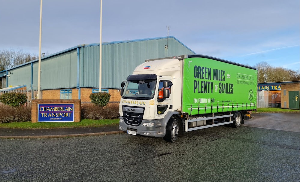 British haulage business Chamberlain Transport has announced that it has switched its local Palletforce collections and delivery vehicles to now be fuelled by hydrotreated vegetable oil (HVO) supplied by Certas Energy.