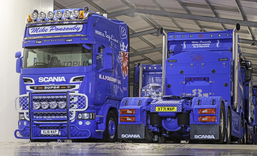 MA Ponsonby has grown from one truck operated by founder Mike Ponsonby into a thriving business with more than 15 Scania trucks and a large fleet of specialist trailers. Mike is still managing director while his son Jack is operations director. Two more sons are specialist HGV drivers.