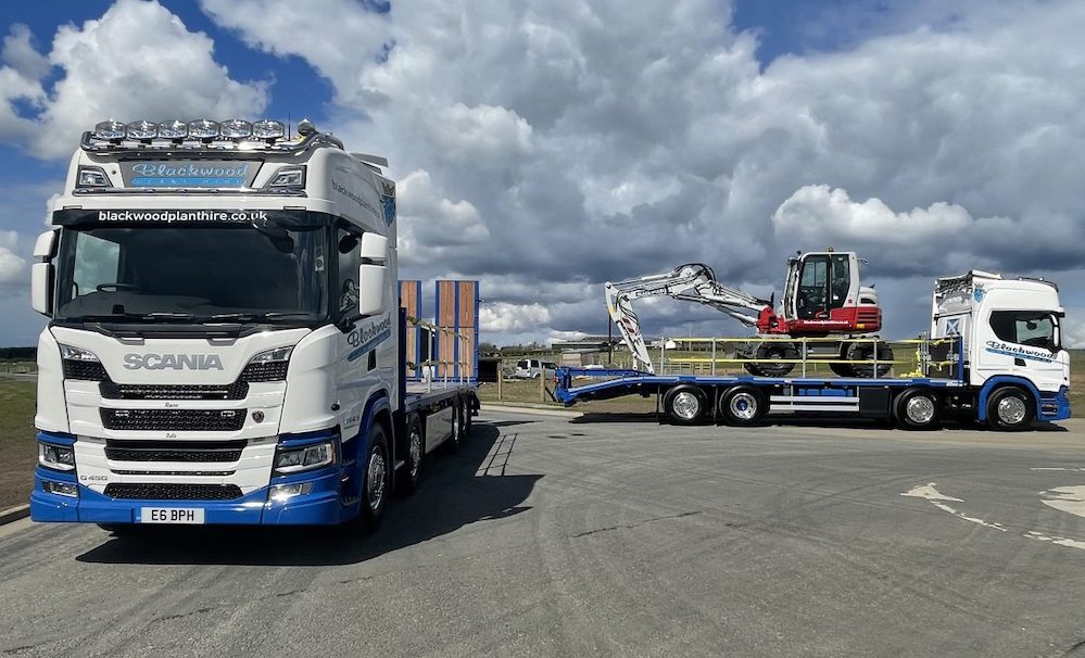 Mounted to two identical 32-tonne, 8×2 Scania G450 chassis, the specialist plant bodies are new additions to Blackwood Plant Hire’s commercial vehicle fleet, continuing a relationship between the two companies that began with the delivery of a tri-axle step frame trailer in 2008.