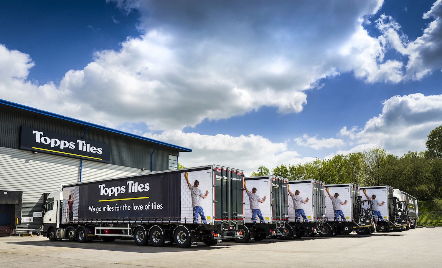 The new livery, as featured on the trailers, is being rolled out across the Topps Tiles fleet. “Our vehicles are our billboard, and by far our largest advertising tool, whether travelling on the road network or parked outside our stores, so it is imperative that the livery presents a strong brand image and consistent message,” says Sian O’Neill, Topps Tiles head of marketing.”By changing our livery, we will also demonstrate to all of our stakeholders, whether they are customers, colleagues or suppliers, that ‘we go miles for our love of tiles!'”