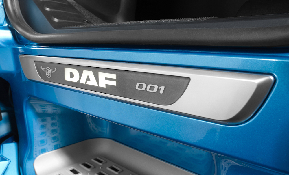 The 90th Anniversary Edition is limited to only 250 vehicles. It is available as a 4×2 tractor (FT) for the markets on the European continent and as a 6×2 tractor (FTG) for the UK and Ireland. Each vehicle features a unique number, which is visible in both the decorative finish inside the cab as well as in the specially illuminated DAF logo panel that can be seen when the door is opened.