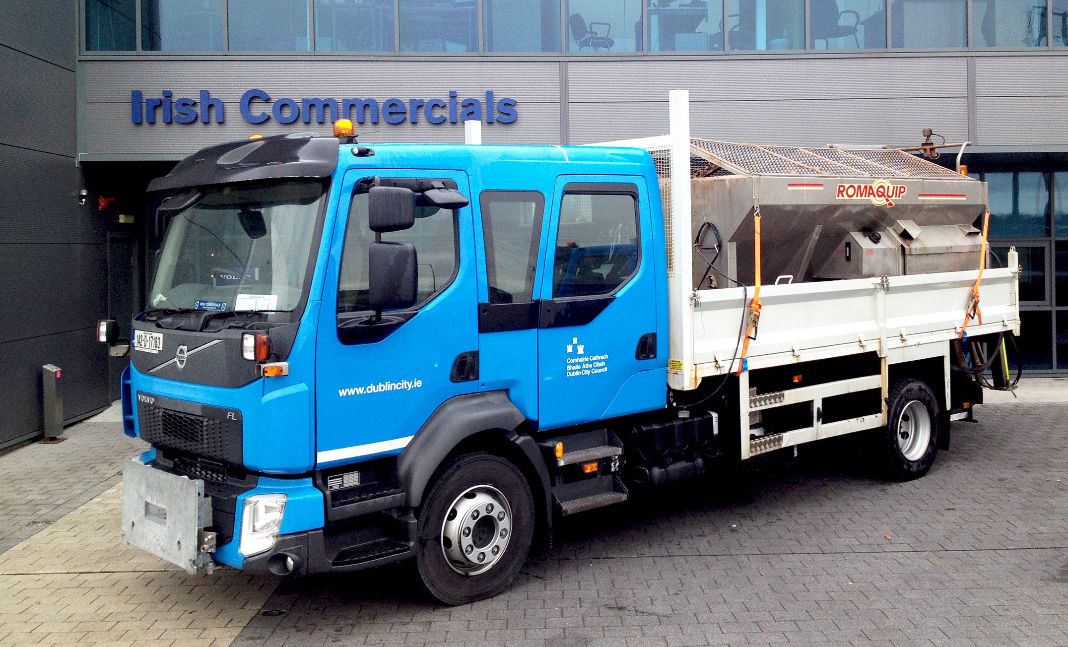 While Dublin City Council’s 16-tonne GVW FL crew cab trucks are operating in everyday use as tippers, they also have the facility to be fitted with demountable gritter bodywork. The gritter spreader mechanism is driven by the engine live drive PTO. The tipper bodywork was built and fitted by Griffith J. Roberts Ltd., of Ballycoolin, Dublin.