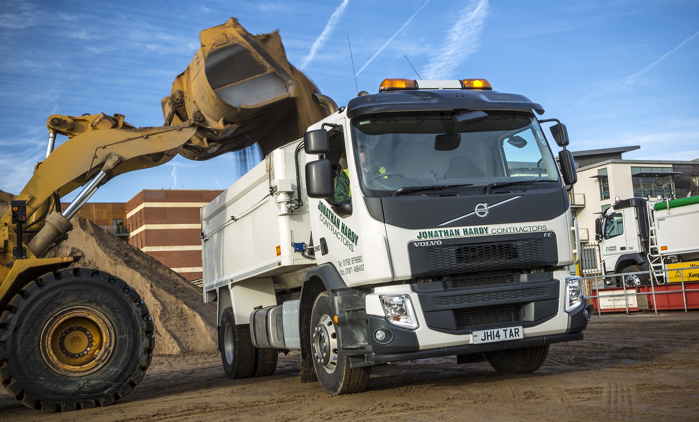 Jonathan Hardy Contractors currently operate three trucks, all Volvos. Their first Volvo, an FE, went on the road in 2011. Jonathan Hardy reports that he also is very pleased with a new-series, Euro-6 FM-450, 6×4 tipper that joined the fleet in 2014. “I can’t believe how much better on fuel and quieter it is than the previous FM,” he says.