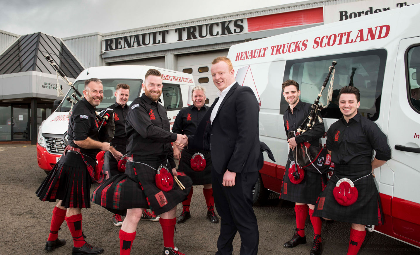 Renault Trucks Scotland is delighted to announce that it is working in partnership with ‘the most famous bagpipe band on the planet’ – the Red Hot Chilli Pipers – to support their upcoming ‘Octane Tour’ (29th October – 30th December 2016). Two Renault Trucks Master 145 Euro-6 crew vans, supplied by Renault Trucks Scotland, will transport 8 musicians and 5 crew across Europe for the Bagrockers’ German and UK tour dates.